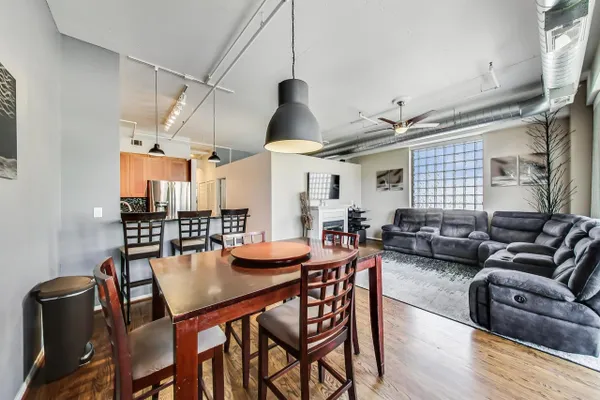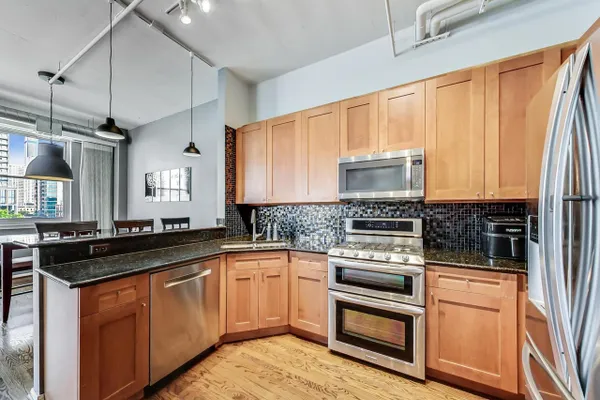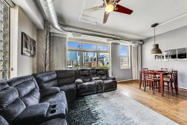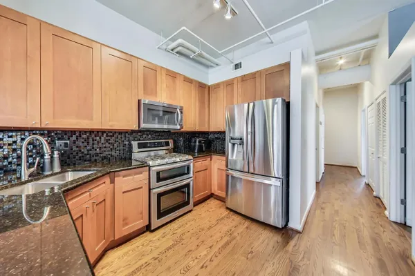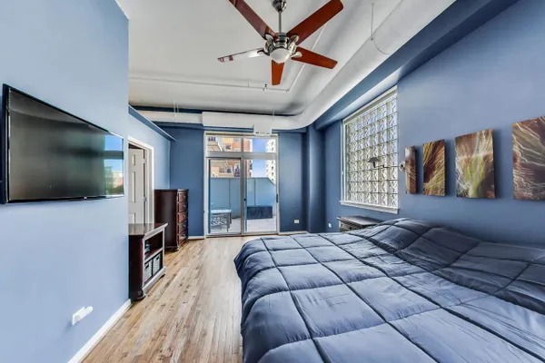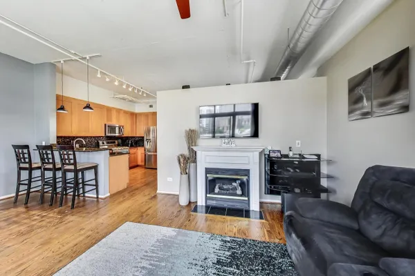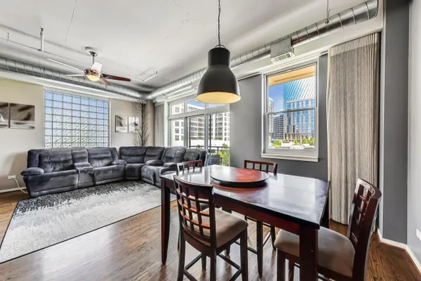 Premier West Loop corner unit with gorgeous views of the city. This unit features hardwood floors throughout, granite countertops, newer stainless steel appliances, tile backsplash, cherry cabinets, 12 ft ceilings, enormous master bedroom with walk in closet, 4 year old furnace, long deeded garage spot that could accommodate up to 2-3 cars, balcony, huge terrace, fireplace, washer/dryer, custom window treatments, and a whopping 1500 square feet. Right in the heart of the West Loop with access to 90/94, public transportation, Greek Town, Whole Foods, Starbucks, and much more!