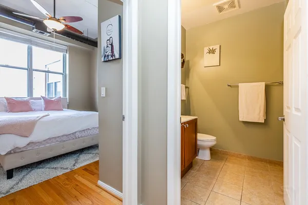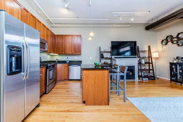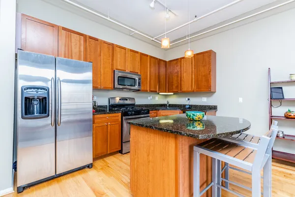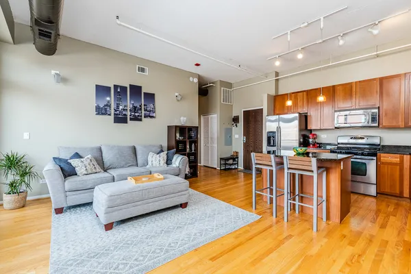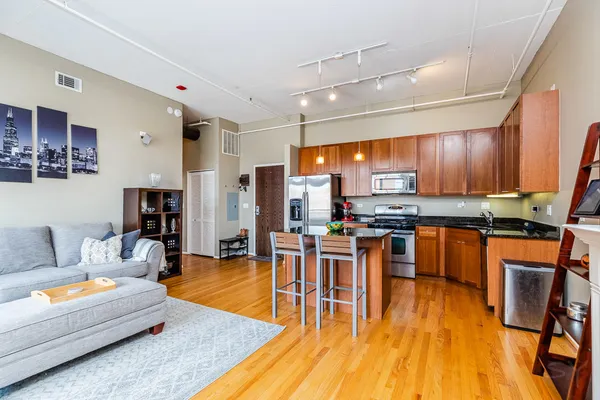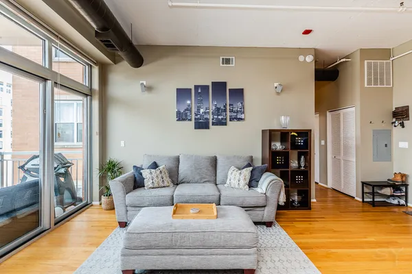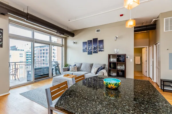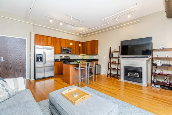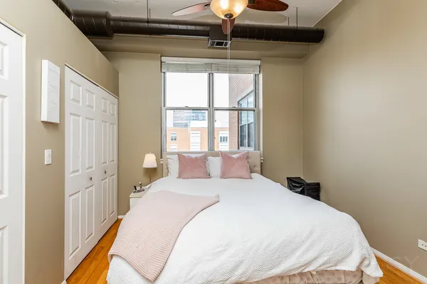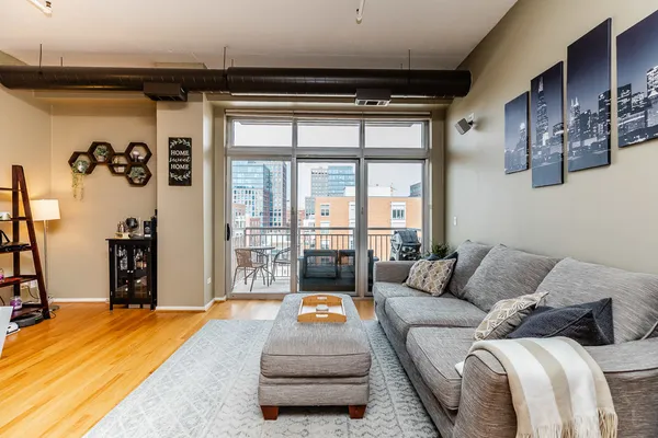 Simply perfect! This large 1 bedroom 1 bathroom condo is situated in the most desirable and central location in the West Loop at the exclusive residences of the 950 W Monroe condominium building. This condo has the most amazing, unobstructed Northern exposure that is refreshingly bright and sunny. With the huge balcony off of the living room and large windows in bedroom, this home is absolutely drenched with natural light. Large bedroom is also fully-enclosed with great closet space. Hardwood floors throughout!! Kitchen has stainless steel appliances, granite countertops, large island with overhang and 42" cabinets. The open layout is inviting and has great flow, allowing you to entertain in style in your upgraded kitchen overlooking the main living area with its beautiful gas fireplace and large glass sliding doors. Step outside onto your spacious private balcony and soak in some of the most amazing views of the West Loop. In-unit laundry. Additional storage included in price. Full amenity building features a fitness center, business center, Pressbox drycleaning service. This is the perfect central location within the West Loop with easy, non-metered parking on Morgan and conveniently only 1 block from Madison St, but much quieter! Overlooking the beautiful Mary Bartelme Park and mere steps from Target, Mariano's, Whole Foods, the Morgan (Pink/Green) 'L' stop or the UIC Halsted (Blue) 'L' stop and West Loop's famous Restaurant Row on Randolph! Don't miss this opportunity to own in the heart of one of Chicago's hottest neighborhoods! Premium heated garage parking $30K