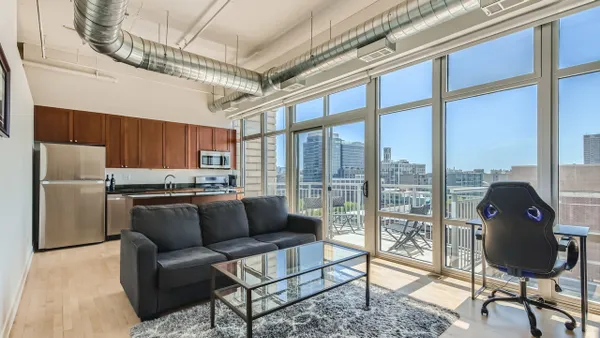 Stunning south-facing one bedroom, one bathroom loft in the heart of the West Loop! This top floor unit features extra high ceilings, expansive floor to ceiling windows, well-appointed kitchen with 42 inch cabinets, granite countertops, new stainless steel appliances and a large center island with seating and additional storage. Sizable bedroom features full wall of closets and extra storage above. Large south facing balcony with plenty of room for outdoor seating and grill. In-unit washer and dryer. Building amenities include doorman, business center, fitness center, and on-site property manager. Unit comes with additional storage locker. Heated garage parking space for additional $25k. Located in one of the most desired areas within the West Loop - adjacent to Mary Bartelme Park, walking distance to Fulton Market, Randolph Street nightlife & award winning restaurants.