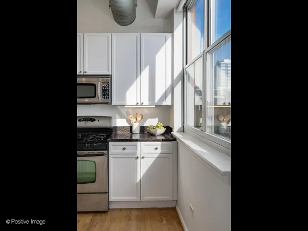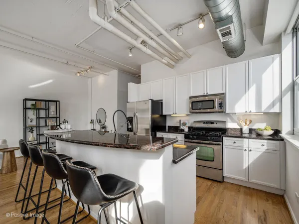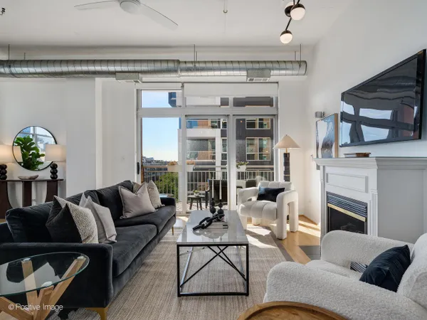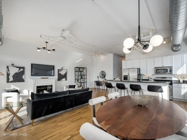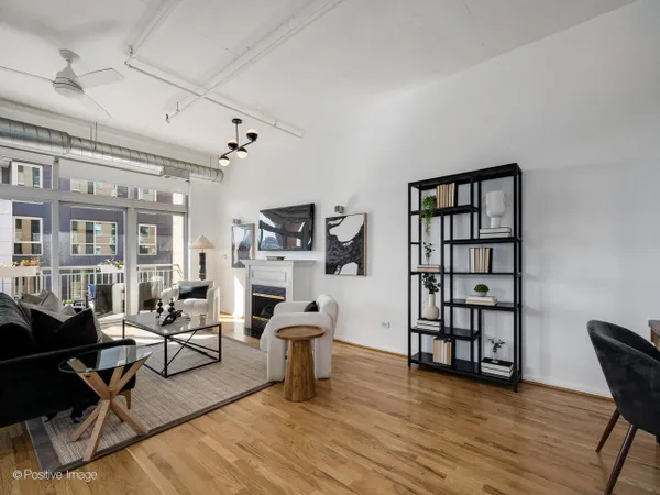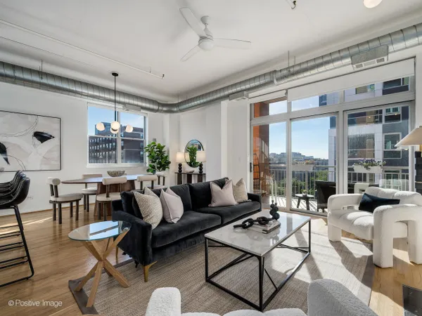 Soaring ceilings, walls of expansive windows, and an unbeatable West Loop location define this stunning corner 2 bedroom 2 bath concrete loft residence. Flooded with natural light, the open layout features hardwood floors throughout, gas fireplace, exposed ductwork, expansive windows, open island white kitchen with stone countertops, stainless steel appliances, and generous storage-perfect for both everyday living and entertaining. The spacious king-size primary suite boasts a crisp white bath with double vanities, separate soaking tub, and glass-enclosed shower. A large second bedroom, excellent closet space, in-unit laundry, and a private balcony with sweeping south west-facing city views make this home both stylish and functional. Included in the price is a deeded Rare oversized tandem garage parking offers room for two cars plus a motorcycle-a true luxury in the city! Residents also enjoy exceptional building amenities, including evening door staff, a fitness center, and a business lounge, bicycle storage and storage cage. All of this is set in the heart of the West Loop, just steps from Chicago's hottest restaurants, shops, and parks. With its incredible walkability score and modern conveniences, this home is a must-see!
